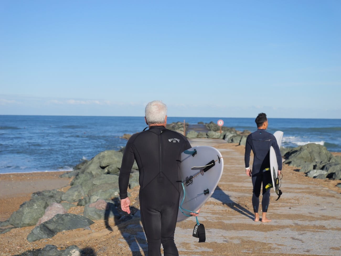 Jean-Marie Ecay, guitariste de renommée internationale et surfeur amateur depuis les années 70, partage lui aussi le constat d’un changement d’ambiance à l’eau. Il évoque une forme de « perte de civilité », alimentée par la densité croissante et le manque de transmission entre générations. Mais malgré ces évolutions, il refuse de céder au pessimisme. Pour lui, le surf reste avant tout une source de joie, un art de vivre qui traverse les époques : « Le plaisir est toujours là, intact, pour peu que chacun respecte un minimum de règles et laisse de la place aux autres », résume-t-il avec bienveillance. Car au-delà des frictions, il y a encore des sessions lumineuses et cette sensation unique d’être en harmonie avec l’océan — un bonheur simple, à la portée de tous.