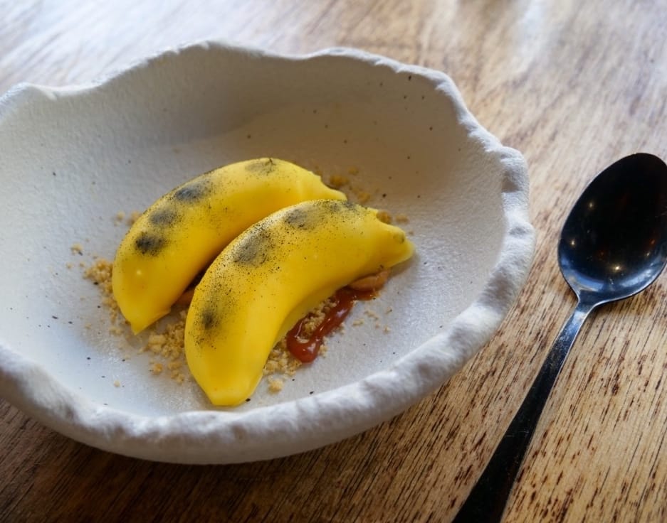 Le dessert suit la même logique. Un travail autour de la banane, tout en légèreté, qui joue sur les nuances et surprend sans en faire trop.