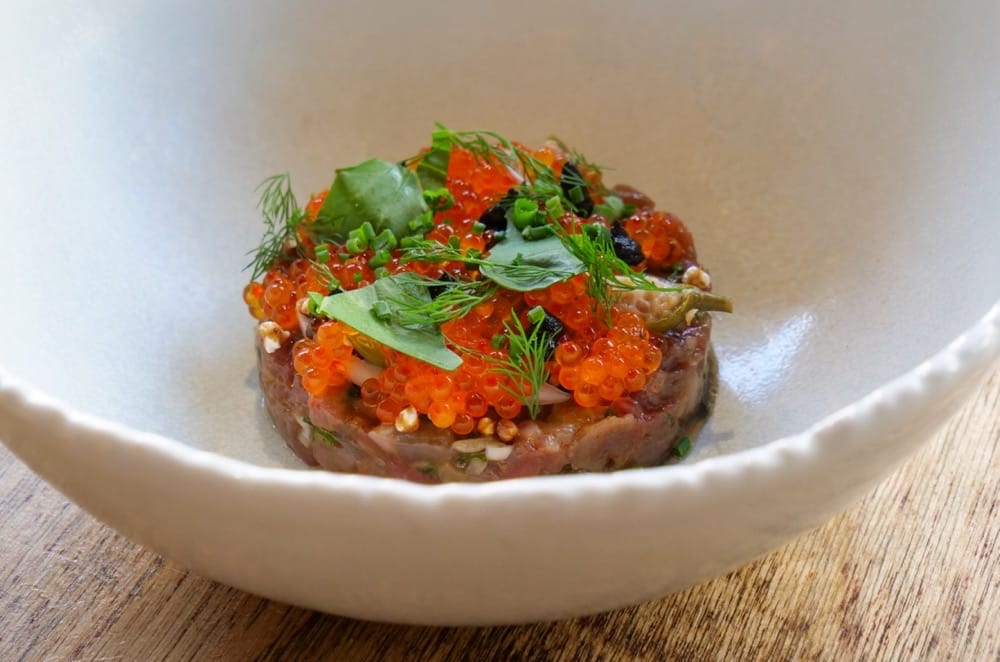Le tartare de bœuf local, soja basilic, sarrasin soufflé, confiture d’algues nori et œufs de truite m’a totalement séduite. Une entrée travaillée, le dressage d’une grande table, pour un prix tout doux de 14,50 €. Leur adresse reflète leur personnalité : claire, exigeante, sans surjeu. Pas de démonstration, mais une vraie maîtrise du goût et des textures.