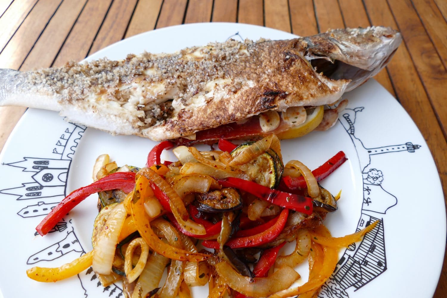 Cuisson d’un poisson sur un lit de gros sel