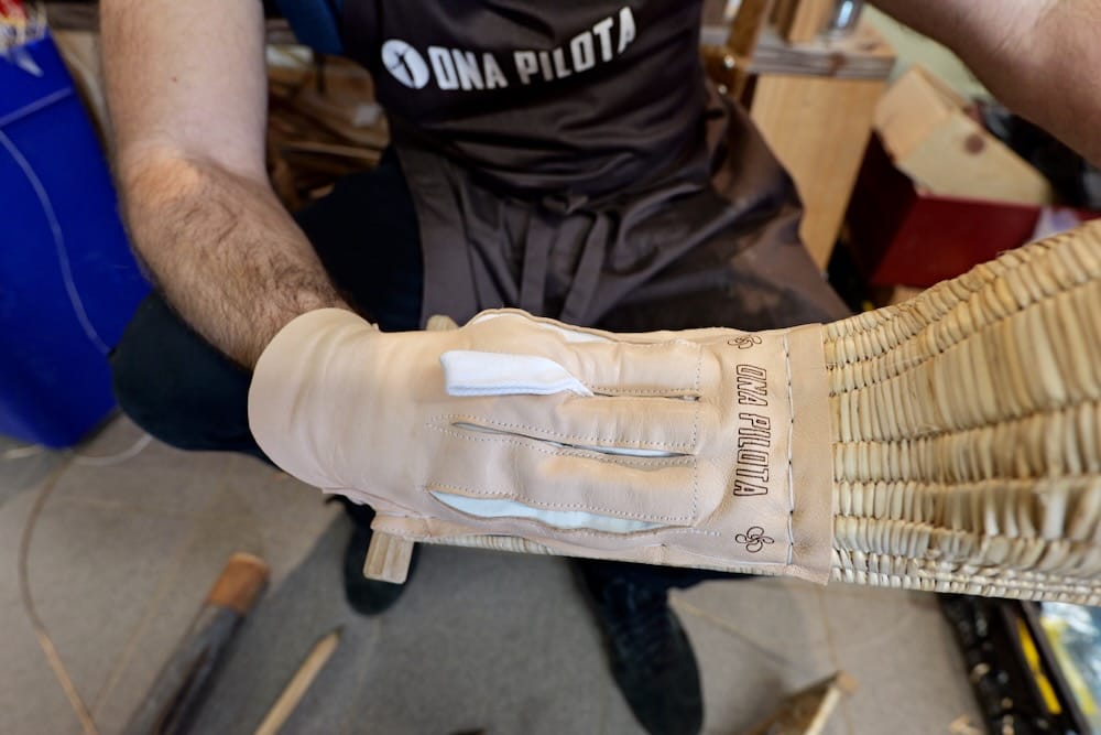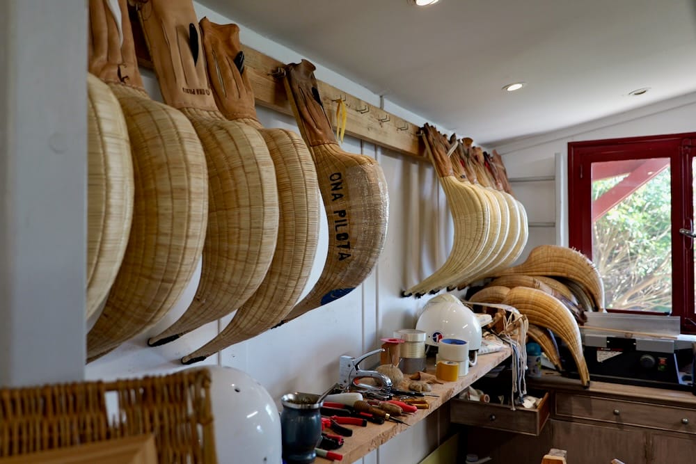 Entre deux saisons, il avait déjà commencé à réparer les pelotes de son club. À Saint-Jean-de-Luz, il apprend les gestes de l’artisanat : réparer le cuir, puis fabriquer une pelote entière, couche après couche. Il apprend aussi à fabriquer des chisteras, auprès d’artisans mexicains et espagnols, dans une tradition familiale où chaque geste compte et se transmet comme un secret.